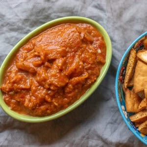 Pair ajvar with Barbari Bread, vegetable sticks, or Air Fryer Pita Chips for a flavorful appetizer.