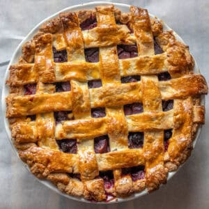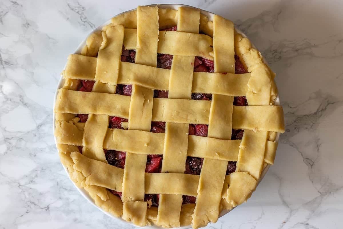 - If you don't want to make a lattice top, just cover the top of the filling with the dough disc and make a small hole in the middle to let the steam out.