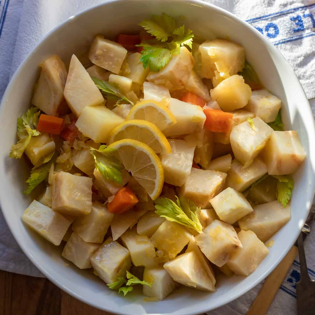- With a side of Pomme Purée(Creamy Mashed Potatoes) or Authentic Greek Lemon Roasted Potatoes.