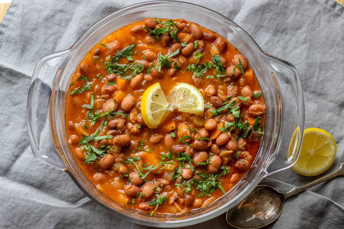 - Lemon juice - I strongly advise generously squeezing fresh lemon juice on top of Barbunya Pilaki before serving to lift the flavor up.