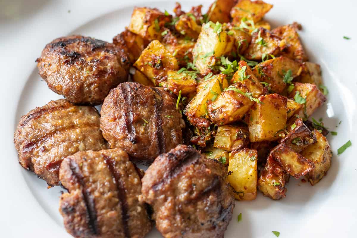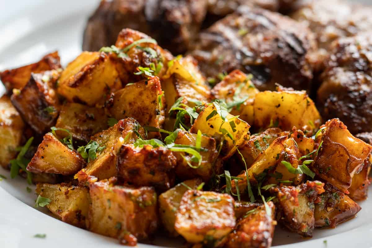 - Grilled meats - Batata Harra can also be served as a side dish to grilled meats like Turkish Chicken Shish Kebab, Adana Kebab (Adana Kofte), Air Fryer Meatloaf, Chicken Meatballs, Harissa Chicken, Grilled BBQ Chicken Thighs, or Turkish Grilled Lamb Kofta - Izgara Kofte.