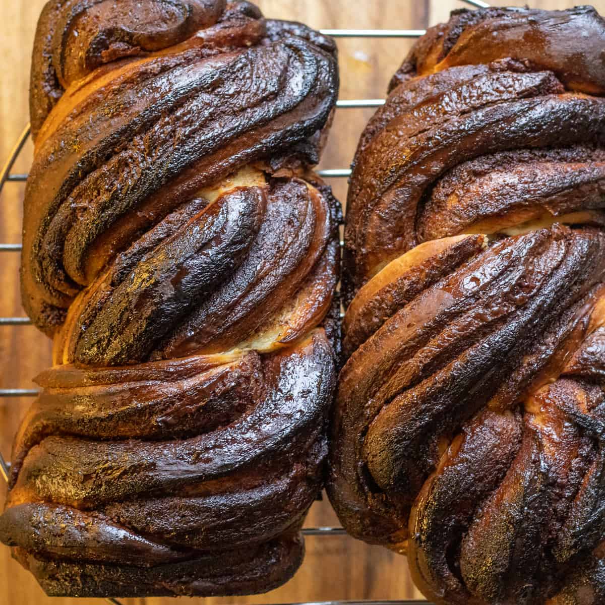- Don't skip glazing the babka loaves with syrup. It makes the babka shiny as well as keeps them moist.