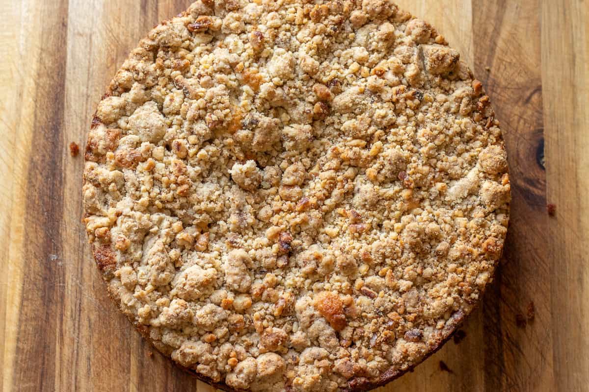 Bake it for 45-50 minutes or until the crumble looks golden brown and the cake is fully cooked.