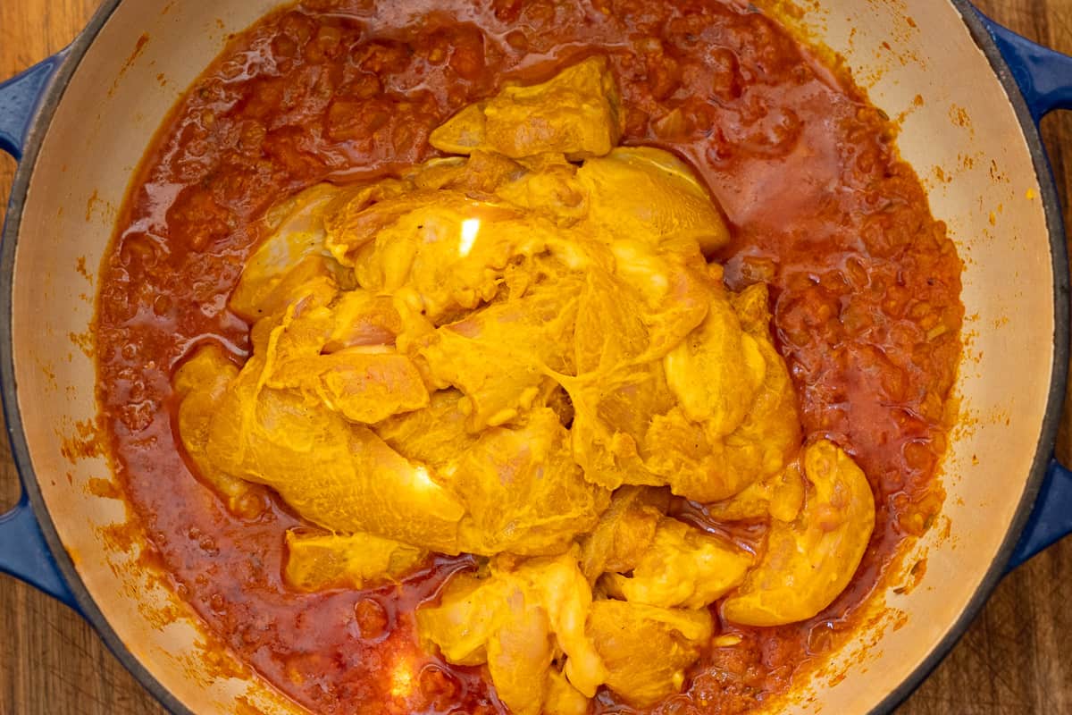 Yogurt adds a creamy texture and helps tenderize the chicken.