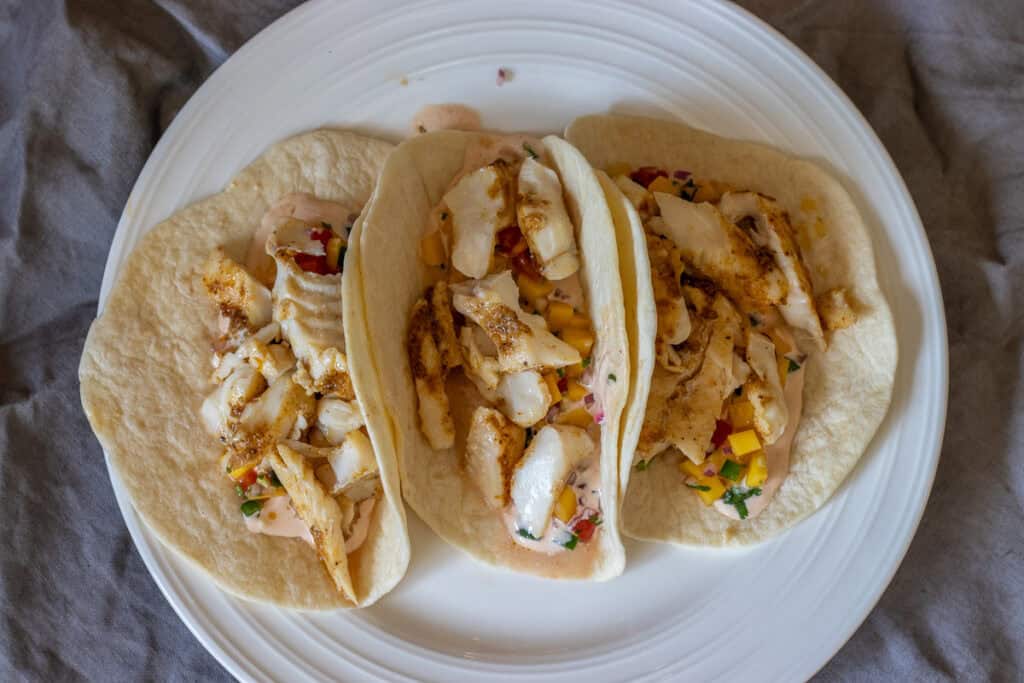 The fish was tender, and the mango salsa added a fresh, sweet touch. Such a good taco recipe.