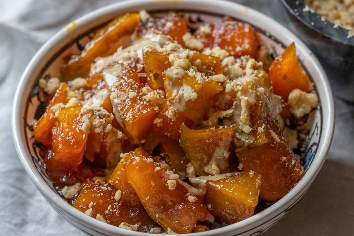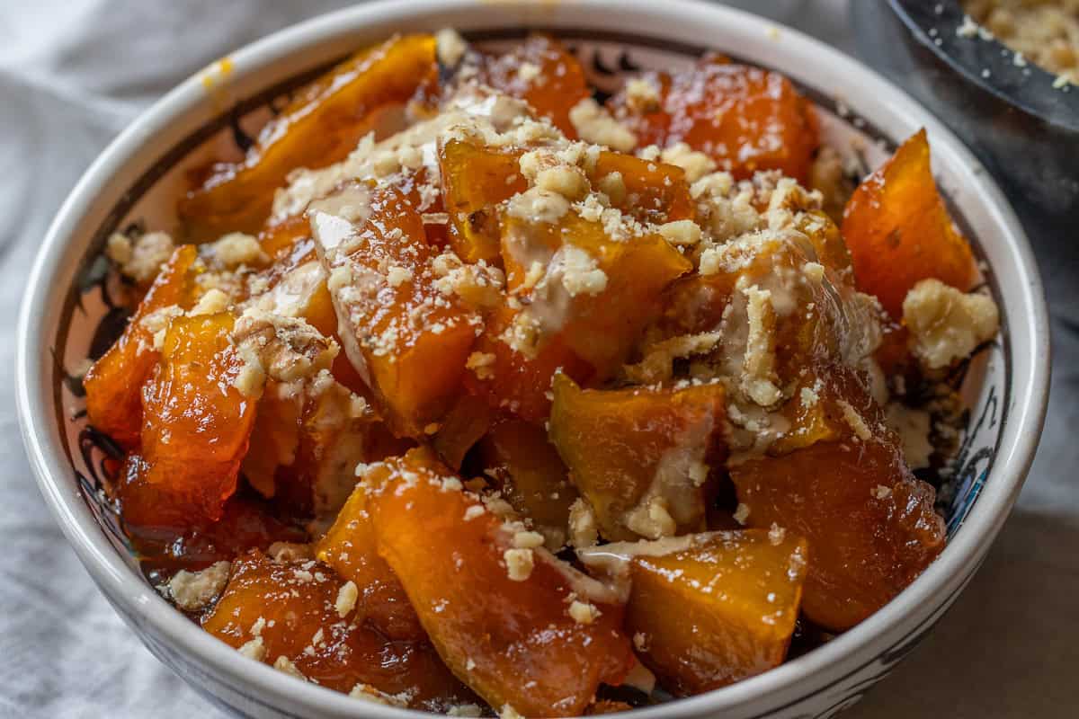 You can keep Kabak Tatlısı in the fridge for up to five days. Store it in a glass container with its syrup to prevent it from drying out.