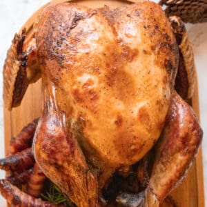 This Easy Oven Roasted Turkey has a nice crispy skin with moist, juicy, and flavourful meat. It is completely fuss-free: no brining, no stuffing, and no basting is required.