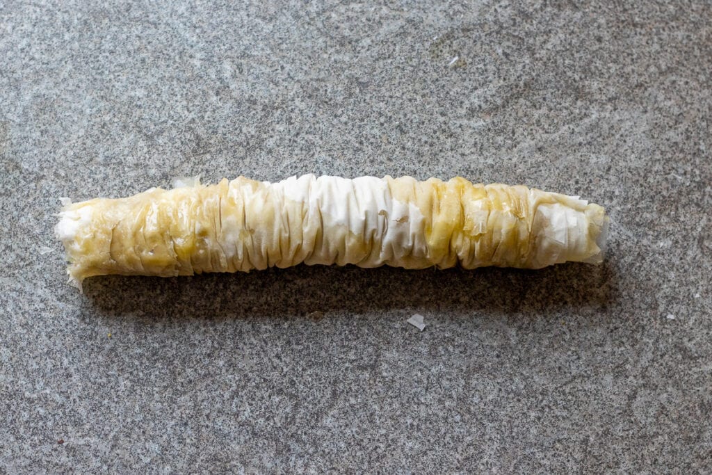 - Butter is key to achieving the signature crispiness of the phyllo layers. Be generous but even when brushing it on.
