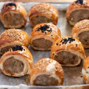 These homemade Shortcrust Pastry Mini Sausage Rolls are a delicious combination of flaky and buttery shop-bought pastry with perfectly seasoned hearty sausage meat. They are the perfect appetizer or finger food for your Christmas parties and are also great for lunch boxes, picnics, or snacks.