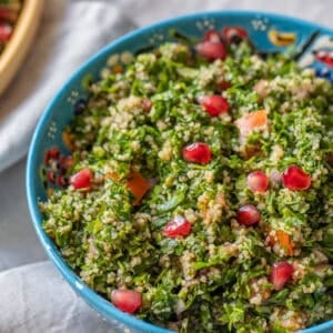 Similar to Persian Shirazi Salad, this simple Tabbouli Salad is the perfect side dish for Shish Tawook (Turkish Chicken Kebab, Grilled Lamb Kofta - Izgara Kofte, and Mediterranean Green Beans (Taze Fasulye).