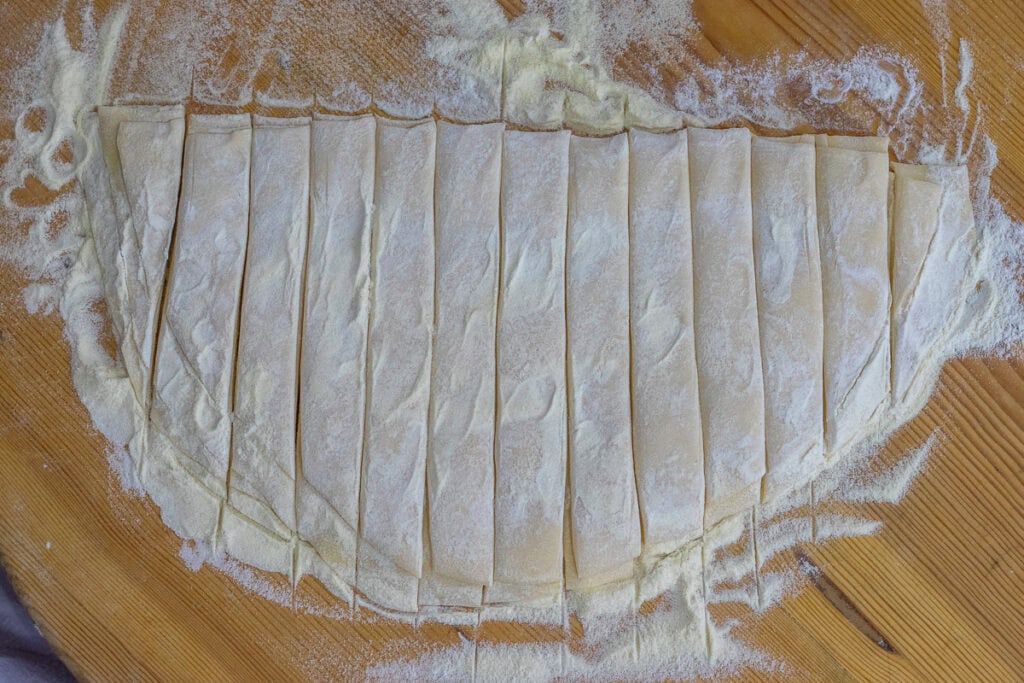 - Separate the noodles right after cutting them if there are any stuck ones. It will be impossible to separate them when they are dry.