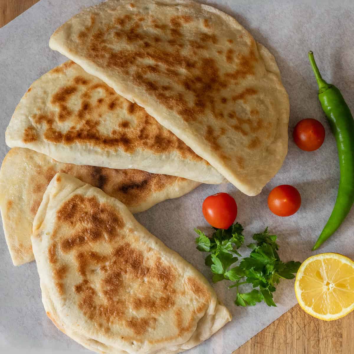 There are many different flatbread types in Turkey such as Sucuklu Pide (Turkish Bread with Spicy Sausage), Easy Rustic Sourdough Bread, Turkish Lahmacun, Gozleme (Turkish Pancakes), and Bazlama (Turkish Flatbread).