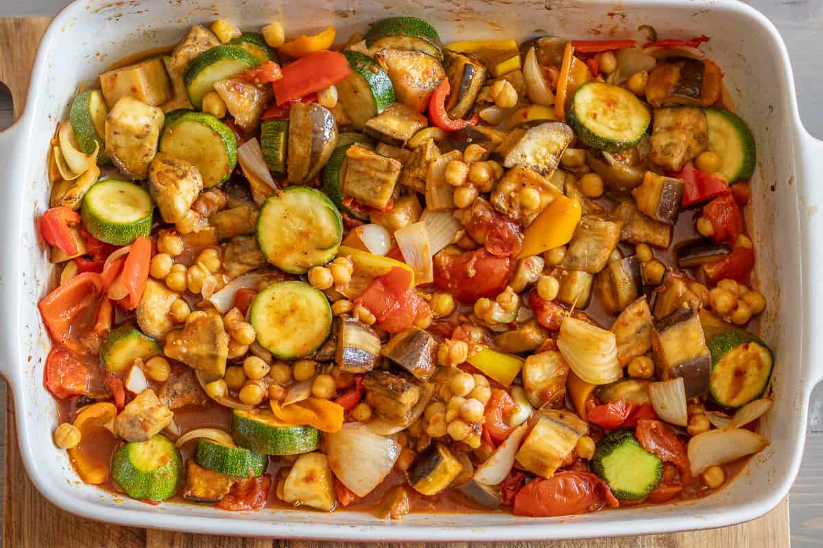 This Mediterranean casserole dish is naturally vegan and gluten-free. It’s similar to dishes like French Ratatouille or Greek Briam but has its own style and flavour notes.