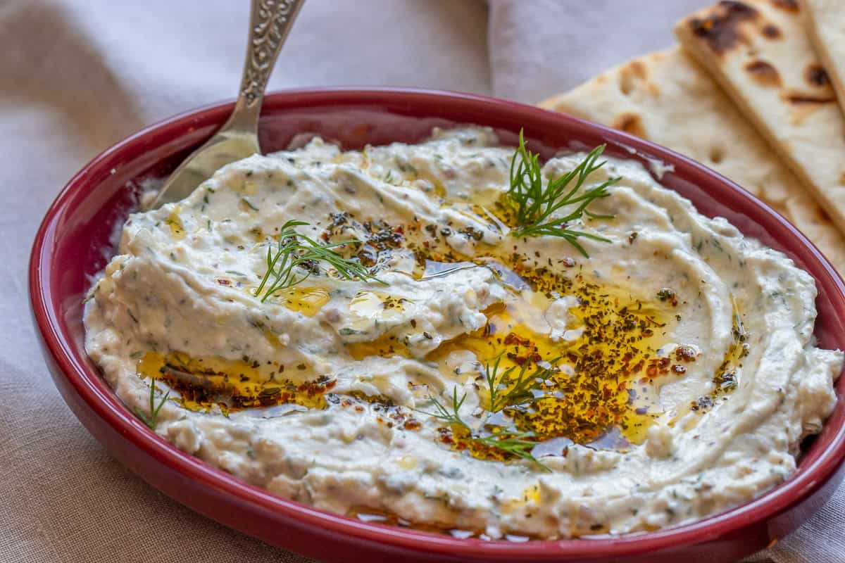 Haydari is a delicious Turkish Yoghurt Dip made with feta cheese, thick strained yogurt, fresh herbs, and chopped walnuts. This tangy dip is one of the most popular mezes in Turkey and also is widely served in Turkish restaurants with kebabs and Pita Bread along with Ezme Salad (Acili Ezme).