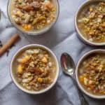 While the grains and legumes are cooking, chop the dried figs and apricots into small pieces.