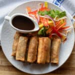 These super light and delicious homemade Crispy Duck Spring Rolls are made with ready-cooked roast duck, cucumbers, green onions, and spring roll wrappers.