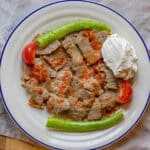 Return the sliced meat to the baking tray and place it in the oven for another 5-6 minutes, until the doner meat slices are nicely browned.