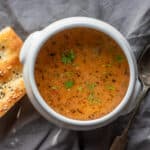 Turkish Tarhana Soup, or Tarhana Çorbası, starts with dried tarhana powder—a fermented blend of flour, yogurt, and vegetables like tomatoes, peppers, onions, and herbs.