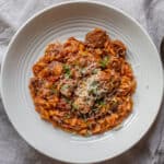When the beef is tender, add the uncooked orzo to the pot and stir to combine.